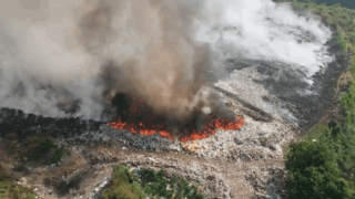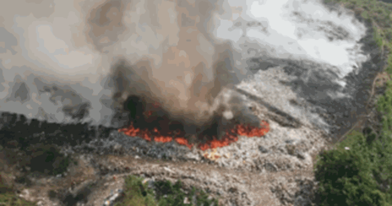 Bãi rác cháy, khói bao trùm
