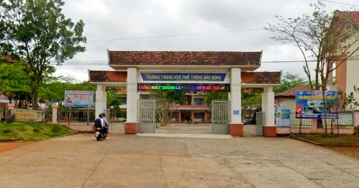 Trường THPT Đắk Song - nơi xảy ra vụ việc. Ảnh: Báo Lâm Đồng . Trường THPT Đắk Song (Lâm Đồng) đã có báo cáo gửi cơ quan chức năng, đề nghị công an vào cuộc làm rõ hành vi phát tán hình ảnh nhạy cảm xuất hiện nhiều ngày liên tiếp trong khuôn viên trường, gây ảnh hưởng nghiêm trọng đến môi trường sư