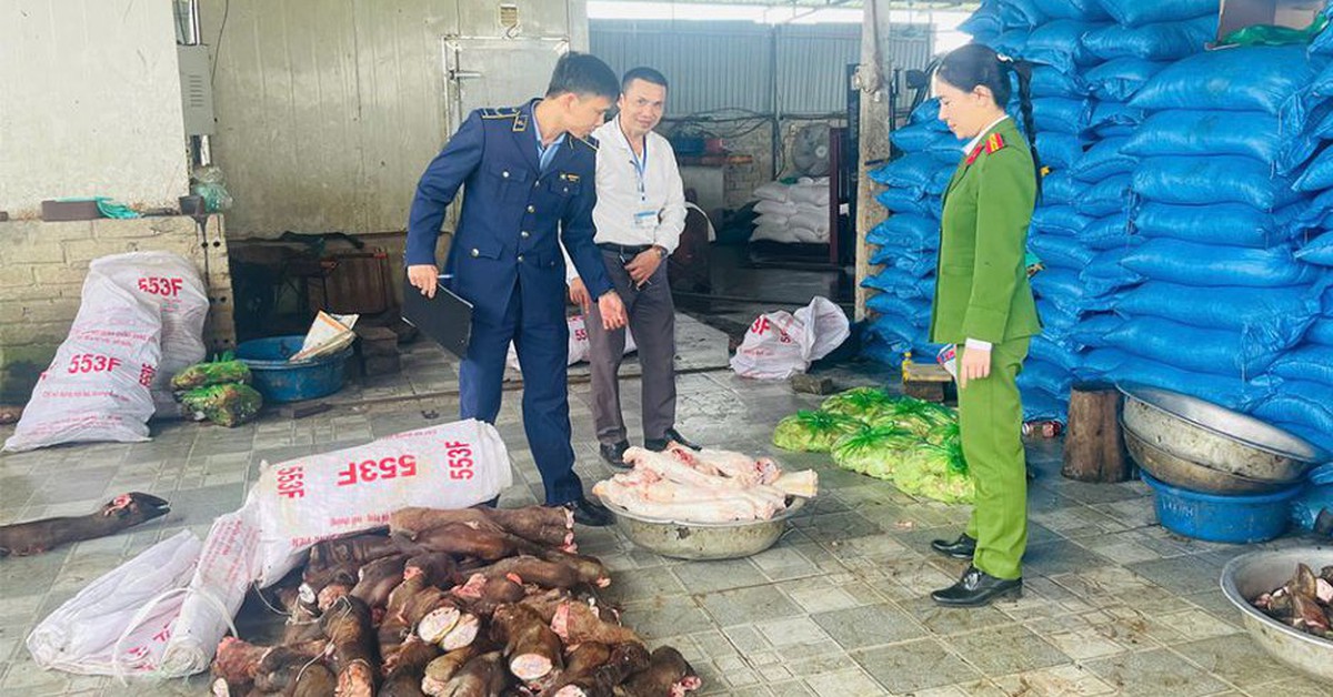 Công an tỉnh Thanh Hoá cho biết Phòng Cảnh sát kinh tế Công an tỉnh vừa chủ trì phối hợp với Chi cục An toàn vệ sinh thực phẩm và Đội Quản lý thị trường số 09 (Chi cục Quản lý thị trường tỉnh Thanh Hoá) thực hiện kiểm tra đột xuất hai kho lạnh đồng thời là cơ sở thu mua, chế biến xương, đuôi, chân t