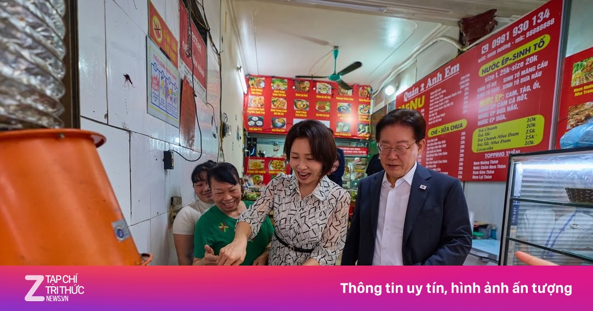 Chủ quán phở chụp ảnh lưu niệm cùng Tổng thống Hàn Quốc và phu nhân. Ảnh: Thiều Văn Mùi . Chiều 24/4, Tổng thống Hàn Quốc Lee Jae Myung và phu nhân rời Hà Nội , kết thúc chuyến thăm cấp Nhà nước tới Việt Nam từ ngày 21-24/4, theo lời mời của Tổng Bí thư, Chủ tịch nước Tô Lâm và phu nhân. Trong thời
