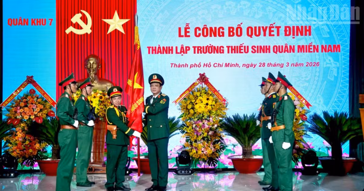 Thượng tướng Nguyễn Trường Thắng trao tặng nhà trường bức tranh Bác Hồ với thiếu nhi miền Nam. Ảnh: Thanh Hiếu . Sáng 28/3, tại TP.HCM, Bộ Tư lệnh Quân khu 7 tổ chức lễ công bố thành lập trường Thiếu sinh quân miền Nam. Theo đó, trường Thiếu sinh quân miền Nam thành lập ngày 27/1/2026, là đơn vị trự