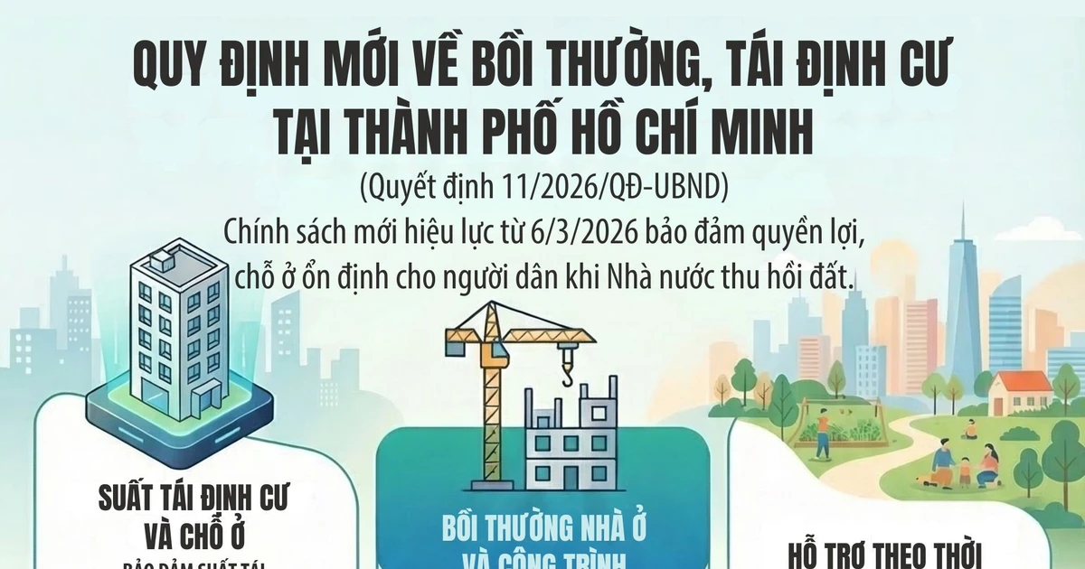 UBND TP HCM vừa ban hành quyết định mới, có hiệu lực từ tháng 3, nhằm hỗ trợ người dân trong việc tái định cư khi Nhà nước thu hồi đất VnExpress. Điểm mới nhất là thành phố sẽ hỗ trợ thêm tiền nếu khoản bồi thường đất không đủ để mua nhà tái định cư, một thay đổi quan trọng so với các quy định trước đây.