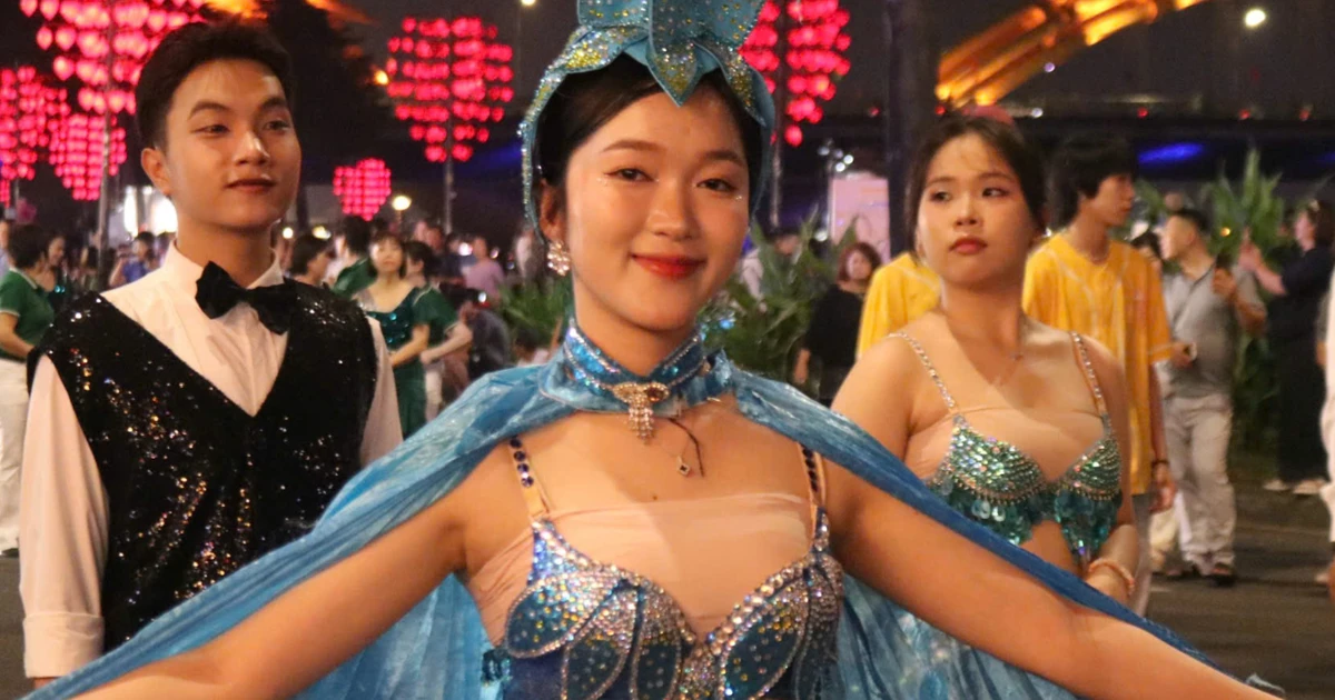 Hàng trăm phụ nữ Đà Nẵng duyên dáng trong tà áo dài, thướt tha diễu hành trên những con phố dọc sông Hàn, mang đến không khí tươi vui và rực rỡ cho thành phố Lao Động.